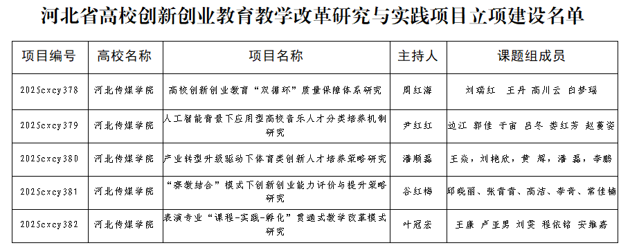 近日,河北省教育厅印发《关于公布2025年省级创新创业课程、教改项目立项建设名单的通知》,我校有3门课程获批省级创新创业课程,5个项目获批省级创新创业教育教学改革研究与实践项目。截至目前,我校已累计获批省级创新创业课程12门,省级创新创业教育教学改革研究与实践项目10项。
