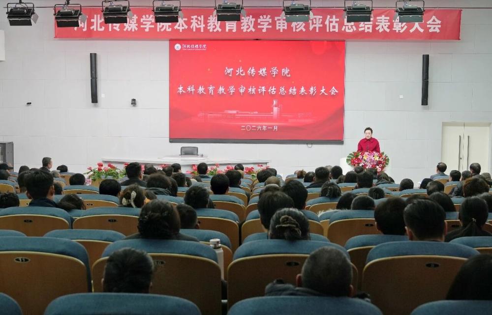 新年伊始,万象更新。2026年1月16日,我校在兴安校区召开本科教育教学审核评估总结表彰大会,全面回顾总结了学校五年来审核评估工作取得的主要成绩和有益经验,表彰了在评建工作中涌现出来的先进集体和个人,并就持续深化教育教学改革、加快建设高水平民办大学进行前瞻部署。精英集团董事长兼总裁翟志海、河北传媒学院校长李锦云等在校校领导出席,全体中层干部、部分教师代表290人参加了会议,共同见证了学校发展史上这一重要的历史时刻。大会由学校党委书记赵红星主持。