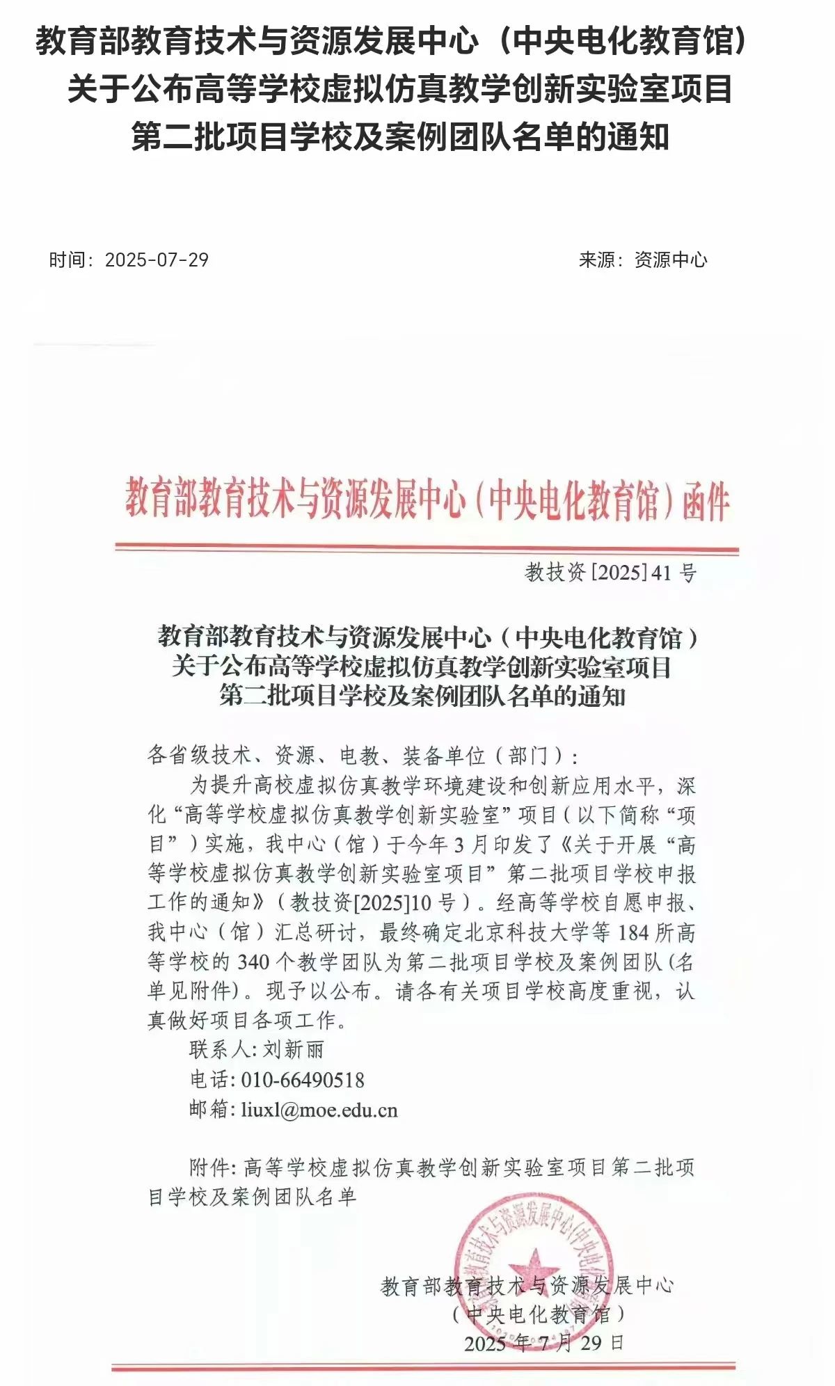 为推动数字技术与高等教育实验教学的深度融合,教育部牵头组织开展高等学校虚拟仿真教学创新实验室项目。该项目以提升虚拟仿真教学环境建设质量与创新应用效能为核心目标,致力于在全国范围内遴选并汇聚一批在虚拟仿真教学创新发展领域积累特色经验的高等院校,形成可供借鉴推广的虚拟仿真教学环境建设与创新应用案例,构建虚拟仿真实验教学交流平台,以高质量的虚拟仿真实验教学促进高等学校数字化转型和育人水平提升。本次遴选最终确定北京科技大学等184所高等学校的340个教学团队为第二批项目学校及案例团队。